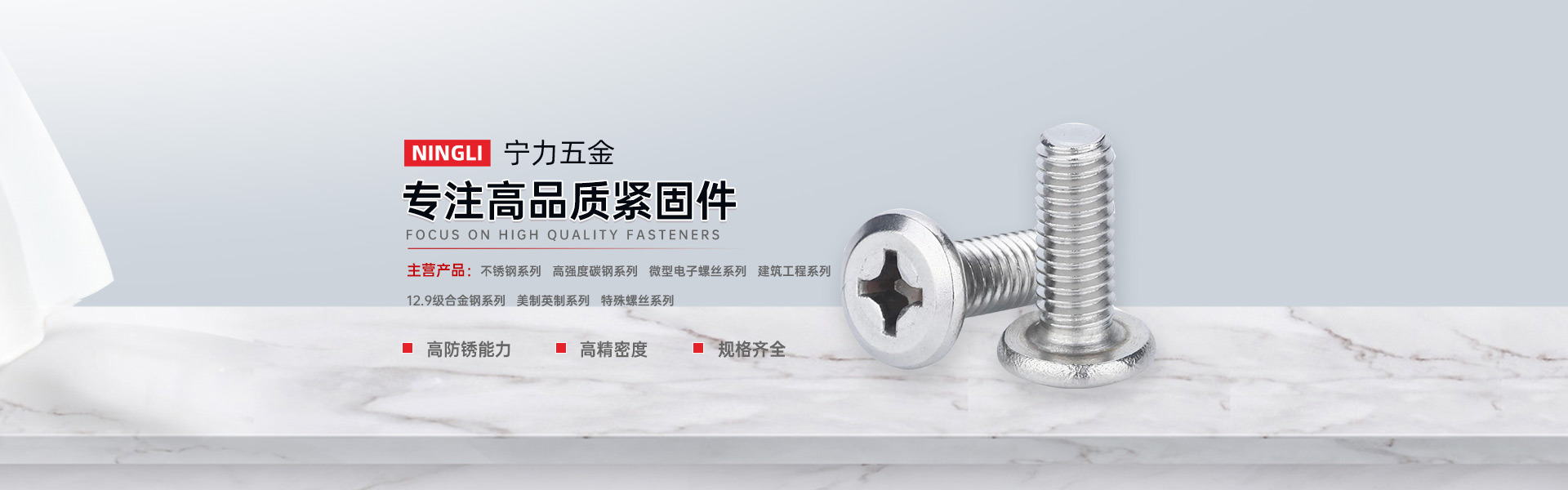 東莞市寧力五金制品有限公司是一家專業從事五金緊固件生產和銷售的企業,公司自年成立以來,本著“平等互利” “共同發展”的原則, 贏得了國內外的眾多客戶的一致好評。為了更好的配合客戶生產需求,于2018年4月引進精密數控車床5臺,CNC數控加工中心3臺。本公司主要是碳鋼、不銹鋼緊固件,非標精密數控加工件專業生產和銷售。采用標準:國標(GB)、德標(DIN)、美標(ASME)、日標(JIS),歐標(EN)、非標定制、以及精密五金車削零件加工等。按照客戶要求可以做各種表面處理:鍍鋅、熱鍍鋅(熱浸鋅)、達克羅、特氟龍(鐵氟龍)、鍍鎳、烤漆、電泳等環保工藝涂層,鹽霧時間最高可以達到1500小時,產品廣泛運用于鋼結構、工程橋梁、機械、通訊、模具、醫療、汽車、電器、船舶、電力、石油化工、電子通訊、自動化設備等行業。配合客戶有:國家重點工程中國散裂中子源(CSNS)緊固件及非標五金件供應、中興、華為戶外基站緊固件、東莞地鐵、深圳地鐵、武漢地鐵工程項目配套緊固件、華為東莞基地工程配套緊固件、電動汽車緊固件、KMS(加拿大)緊固件及五金件,醫療設備五金件配套等