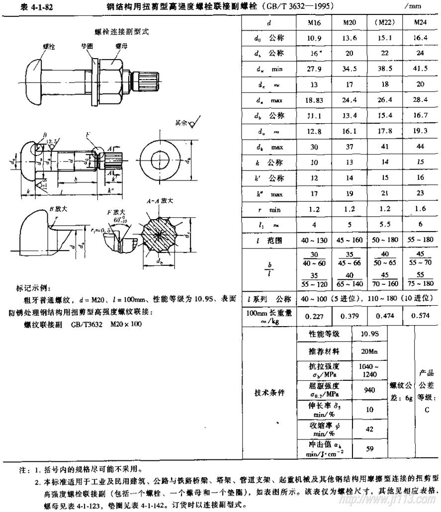 簡介:]扭剪型高強度螺栓應用于鋼結構工程安裝。規格:M16-M24長度:50mm~200mm表面處理:發黑庫存現貨,價格優惠,歡迎來電咨詢。