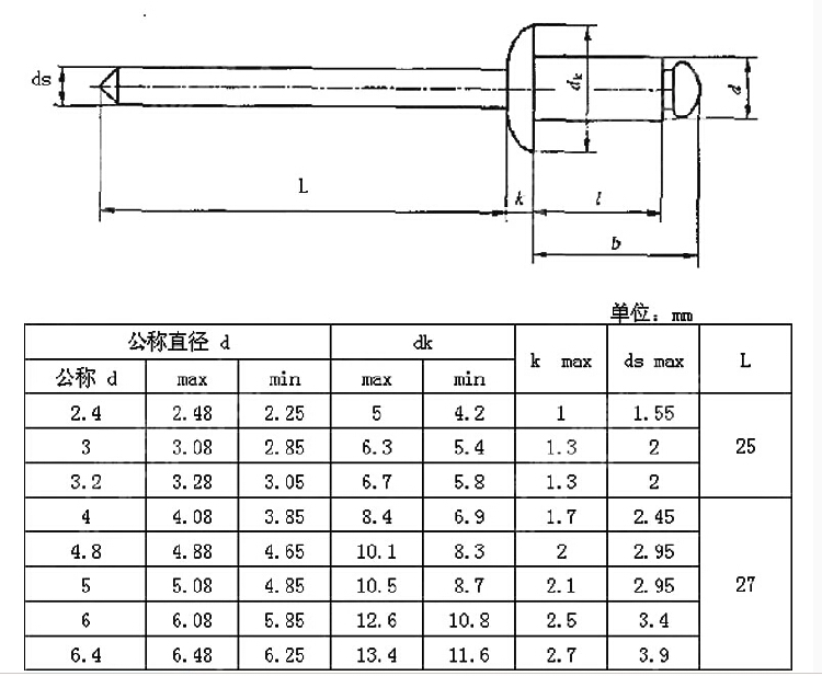 圓頭開口型抽芯鉚釘